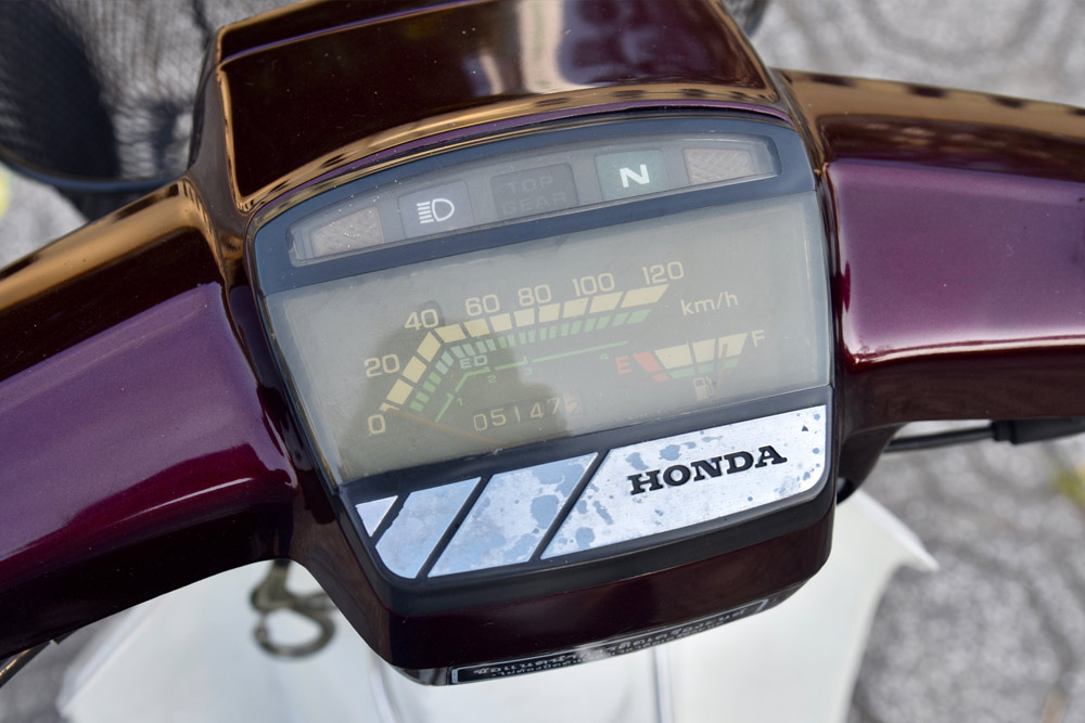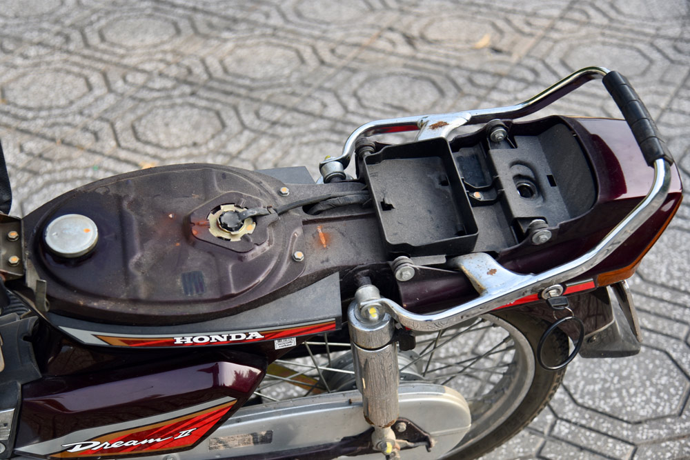 Nếu phải chọn một đặc điểm để nhận diện Dream Thái, có lẽ tôi sẽ chọn màu sơn – màu tím nho đậm đặc trưng phủ trên gác chân tròn, trên dàn nhựa óng ánh nhũ đỏ. Đó là màu sắc của hoài niệm, của sự khác biệt mà không dòng xe nào sau này có thể sao chép.