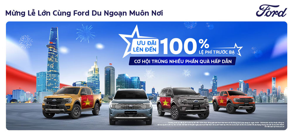 Tháng 9, với nhiều ngày lễ lớn mang ý nghĩa quan trọng, là dịp lý tưởng để các gia đình và doanh nghiệp lên kế hoạch cho những chuyến đi đáng nhớ hoặc khởi động các dự án mới. Hòa chung không khí tưng bừng này, Ford Việt Nam và mạng lưới đại lý ủy quyền chính thức trên toàn quốc đã cùng nhau triển khai chương trình khuyến mãi đặc biệt mang tên “Mừng Lễ Lớn Cùng Ford Du Ngoạn Muôn Nơi”.
