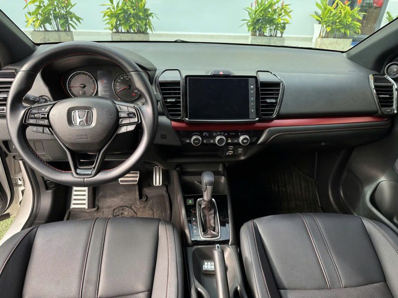 Thiết kế ngoại thất • Phong cách thể thao: Honda City RS 2023 có diện mạo mạnh mẽ với lưới tản nhiệt sơn đen, cản trước tinh chỉnh và logo RS đặc trưng. • Hệ thống chiếu sáng LED: Đèn pha LED sắc nét tích hợp đèn chạy ban ngày, cùng cụm đèn hậu LED ấn tượng. • La-zăng hợp kim: Mâm xe kích thước 16 inch với thiết kế thể thao hai tông màu.Nội thất hiện đại • Ghế bọc da pha nỉ cao cấp: Ghế có thiết kế thể thao với đường chỉ đỏ nổi bật. • Màn hình giải trí: Trang bị màn hình cảm ứng 8 inch hỗ trợ Apple CarPlay và Android Auto. • Hệ thống âm thanh: Âm thanh cao cấp với 8 loa, mang lại trải nghiệm giải trí sống động. • Không gian rộng rãi: Nội thất thiết kế tối ưu, phù hợp cho cả gia đình hoặc nhóm bạn.Động cơ và vận hành • Động cơ i-VTEC 1.5L: Công suất 119 mã lực và mô-men xoắn 145 Nm, kết hợp với hộp số CVT, mang lại khả năng tăng tốc mượt mà và tiết kiệm nhiên liệu. • Hệ thống treo cải tiến: Đảm bảo cảm giác lái êm ái và ổn định trên mọi địa hình. • Chế độ lái thể thao: Trang bị lẫy chuyển số trên vô-lăng, tăng sự phấn khích khi lái.Công nghệ an toàn • Honda Sensing: Gói an toàn tiên tiến với các tính năng như: • Hệ thống phanh giảm thiểu va chạm (CMBS). • Hỗ trợ giữ làn đường (LKAS). • Kiểm soát hành trình thích ứng (ACC). • Cảnh báo chệch làn đường (RDM). • Camera lùi Hỗ trợ đỗ xe dễ dàng và an toàn hơn.Với thiết kế cuốn hút, trang bị hiện đại và khả năng vận hành ấn tượng, Honda City RS 2023 là lựa chọn lý tưởng cho những ai đang tìm kiếm một mẫu sedan trẻ trung, tiện nghi và đáng tin cậy