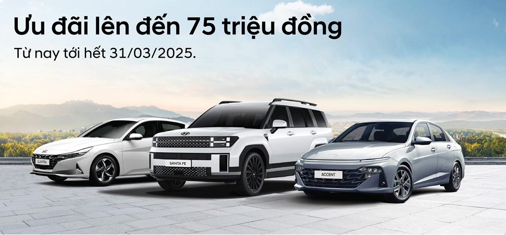 Hyundai Thành Công Việt Nam (HTV), nhà sản xuất và phân phối độc quyền các dòng xe Hyundai tại Việt Nam, chính thức công bố chương trình khuyến mãi hấp dẫn dành cho khách hàng mua xe trong tháng. Chương trình áp dụng cho nhiều mẫu xe Hyundai đang được ưa chuộng trên thị trường, với tổng giá trị ưu đãi lên đến 75 triệu đồng.