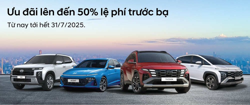 Hyundai Thành Công (HTV) chính thức công bố chương trình ưu đãi đặc biệt trong tháng 7/2025, mang đến cơ hội sở hữu các dòng xe Hyundai với mức hỗ trợ lệ phí trước bạ lên đến 50%. Chương trình áp dụng cho nhiều mẫu xe được ưa chuộng, hứa hẹn tạo điều kiện thuận lợi để khách hàng trải nghiệm những sản phẩm chất lượng với chi phí hấp dẫn.