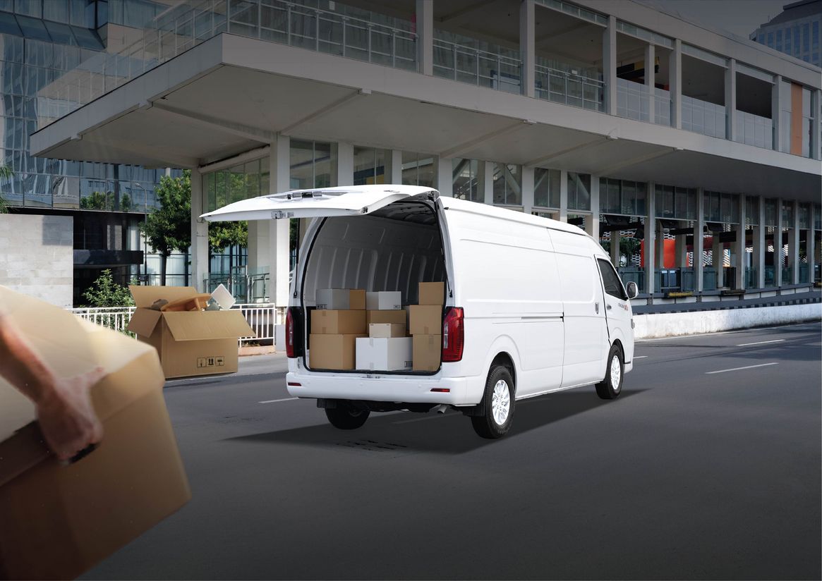 Một trong những điểm nhấn nổi bật của KIMLONG X9 Van là khoang chở hàng có dung tích lên đến 11,5 m³, thuộc nhóm lớn nhất trong phân khúc xe van tải nhẹ. Dung tích rộng rãi này cung cấp không gian lý tưởng, cho phép vận chuyển đa dạng các loại hàng hóa, từ nông sản, hàng tiêu dùng cho đến các kiện hàng có kích thước cồng kềnh. Việc gia tăng khối lượng hàng hóa chuyên chở trong mỗi chuyến không chỉ giúp tối ưu hóa hiệu suất vận tải mà còn giảm đáng kể tần suất vận hành, từ đó tiết kiệm chi phí nhiên liệu, nhân công và rút ngắn thời gian giao nhận. Bên cạnh đó, cửa mở khoang hành lý được thiết kế dạng hai cánh, tối ưu hóa không gian bốc xếp và tạo điều kiện thuận lợi cho việc sắp xếp, phân loại hàng hóa một cách khoa học. Thiết kế này đặc biệt hữu ích khi di chuyển và giao nhận hàng hóa trong các tuyến đường hẹp hoặc khu vực đô thị đông đúc, giúp thao tác lên xuống hàng nhanh chóng, linh hoạt và giảm áp lực khai thác trong giờ cao điểm.