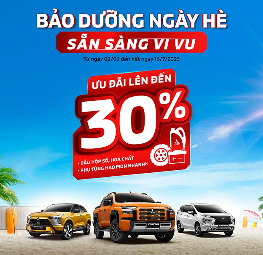 Chào hè 2025, Mitsubishi Motors Việt Nam (MMV) triển khai chương trình khuyến mãi dịch vụ “Bảo dưỡng ngày hè – Sẵn sàng vi vu” với ưu đãi hấp dẫn. Đây là cơ hội tuyệt vời để khách hàng chăm sóc xe, đảm bảo an toàn và thoải mái trên mọi hành trình mùa hè. Chương trình áp dụng tại hệ thống nhà phân phối ủy quyền của MMV trên toàn quốc.