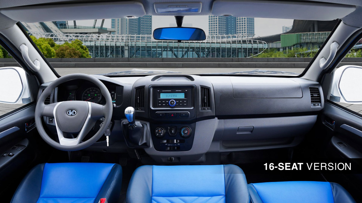 Bên trong khoang xe, 16 ghế ngồi bọc da cao cấp được sắp xếp theo bố cục khoa học, tối ưu hóa diện tích sử dụng mà không đánh đổi sự thoải mái. Hệ thống điều hòa đa vùng hoạt động hiệu quả, đảm bảo nhiệt độ dễ chịu cho toàn bộ hành khách lẫn tài xế dù hành trình kéo dài.