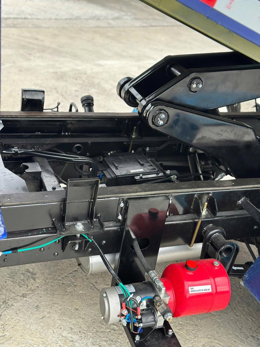 | Thùng ben tự đổ | 2.100 × 1.580 × 350 mm | 1,2 m³, nâng hạ bằng điện không cần nổ máy |
